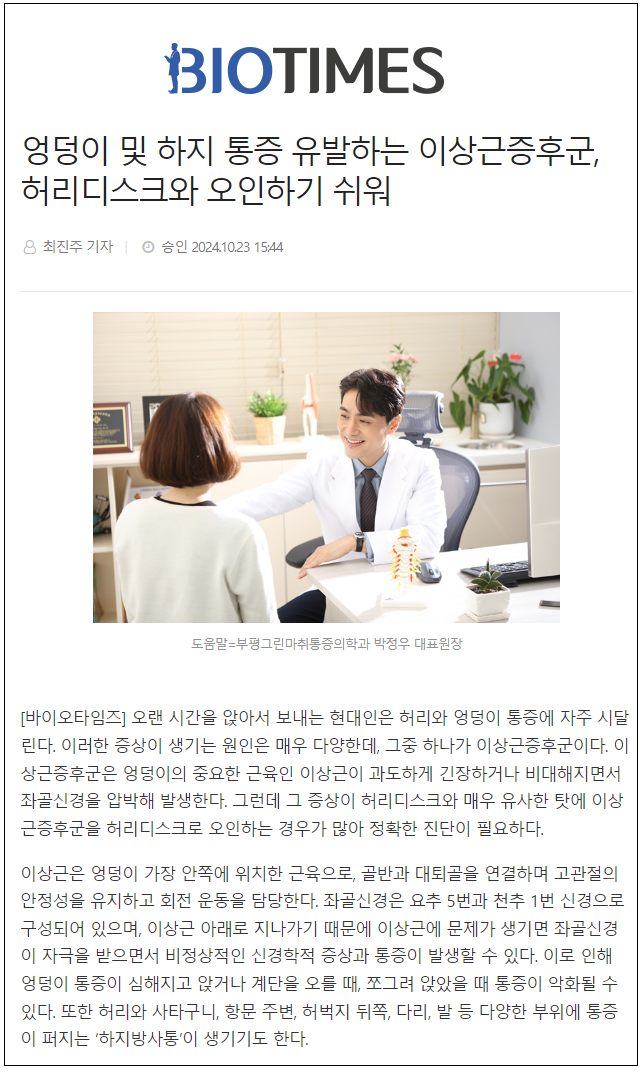 엉덩이 및 하지 통증 유발하는 이상근증후군, 허리디스크와 오인하기 쉬워