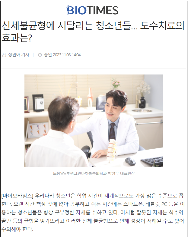 신체불균형에 시달리는 청소년들… 도수치료의 효과는?