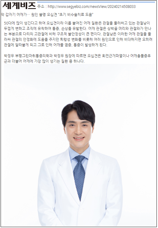 50대에 많이 생긴다고 하여 오십견이라 이름 붙여진 어깨 질환은