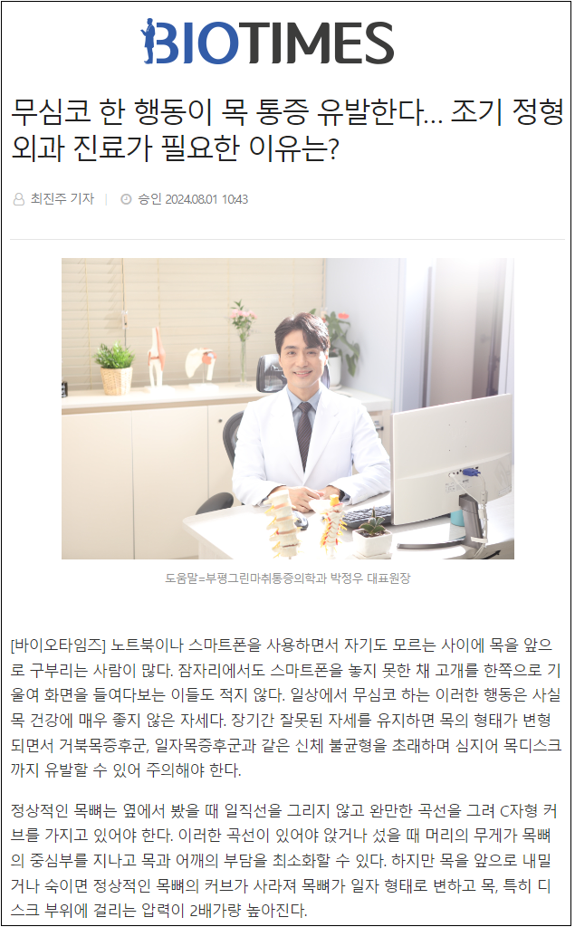 무심코 한 행동이 목 통증 유발한다… 조기 정형외과 진료가 필요한 이유는?