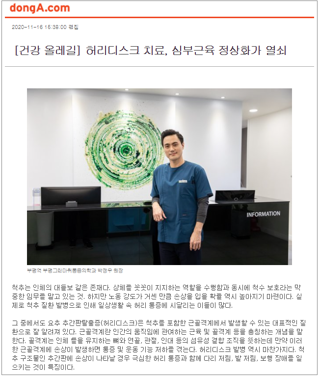[건강 올레길] 허리디스크 치료, 심부근육 정상화가 열쇠