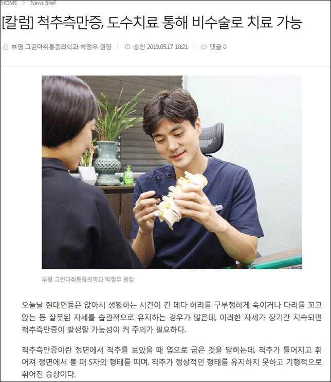 척추측만증에 관한 박정우원장님의 의학칼럼을 소개합니다.