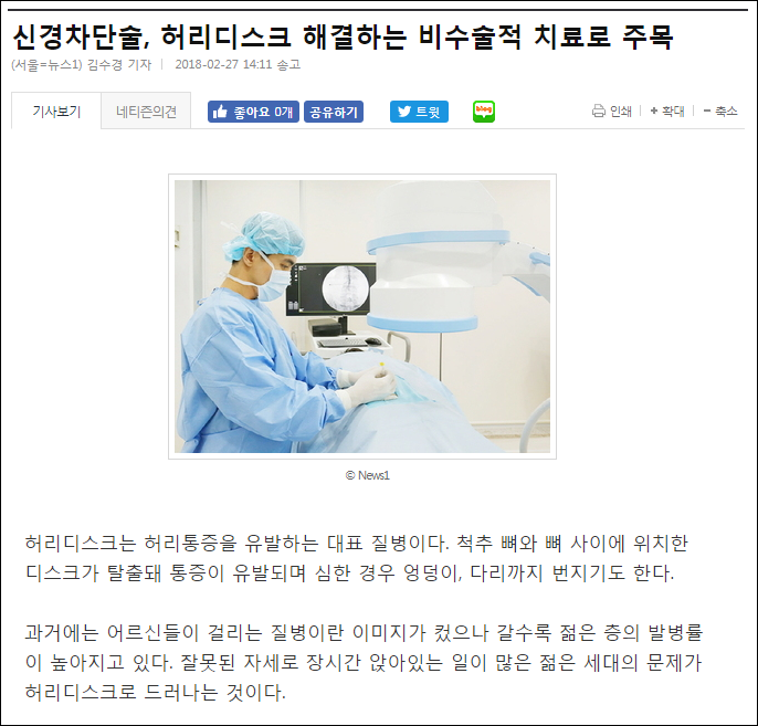 "허리디스크 신경차단술" 뉴스기사를 소개합니다 :)