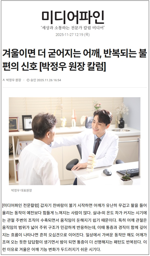 겨울이면 더 굳어지는 어깨, 반복되는 불편의 신호 [박정우 원장 칼럼]