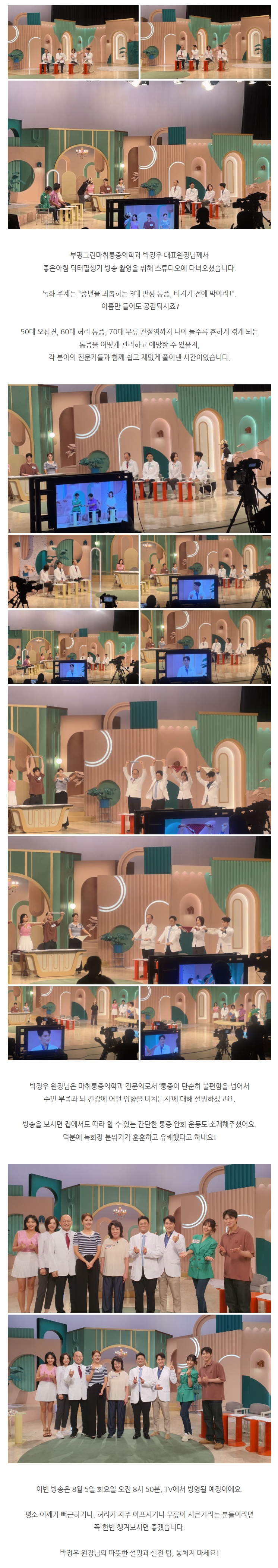 [공지사항] 부평그린 박정우대표원장님 좋은아침 닥터필생기 출연 (방송일 8월 5일 화요일) 작성일 : 2025.07.24 부평그린마취통증의학과 댓글 : 0 조회 : 877 부평그린 박정우대표원장님 좋은아침 닥터필생기 출연 (방송일 8월 5일 화요일)